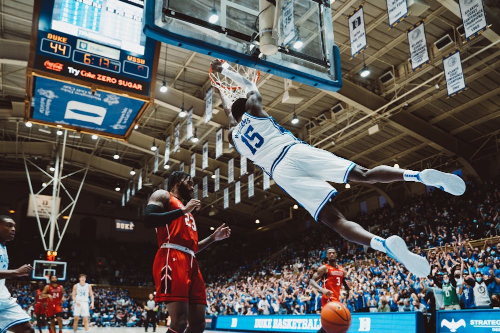 The Blue Devils came out of the gates scorching hot Saturday afternoon, jumping out to an early 8-0 lead and forcing a Rams timeout after consecutive threes by Trevor Keels and Wendell Moore Jr. Duke did not let up, either, running their way to 37 points in the first 10 minutes and 63 in the first half behind an energized press scheme and a mercilessly fast transition offense. At the first half buzzer, the Blue Devils had sunk seven threes and dished 17 assists to Winston-Salem State’s zero.