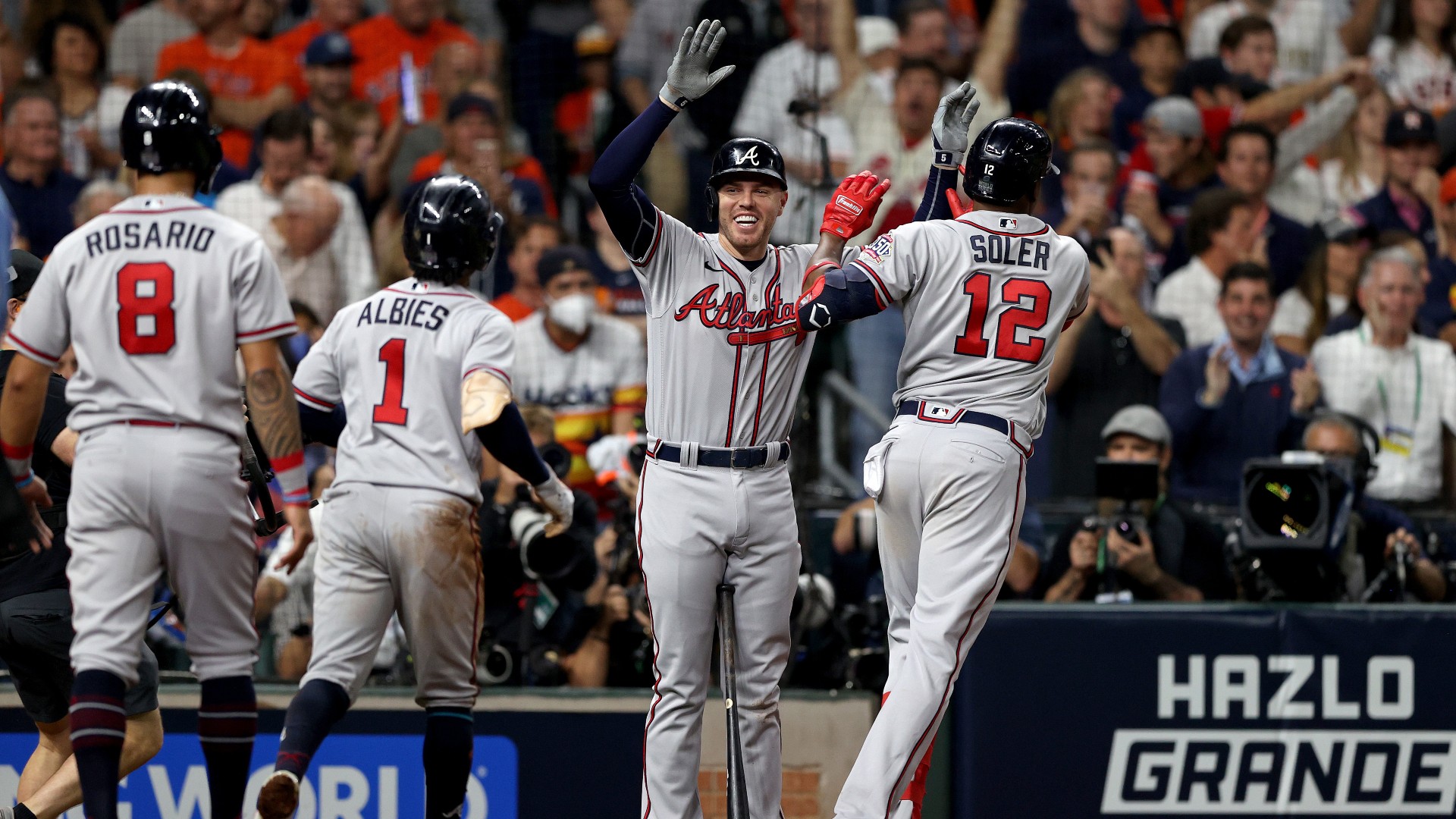 The Braves might not have been able to clinch the World Series title in their home ballpark, but they wasted little time in Houston establishing that they would end the series in six games. The Braves hit three home runs, including a moonshot by Jorge Soler, to power the offense to seven runs — the second time the team scored that many runs at Houston in three games.